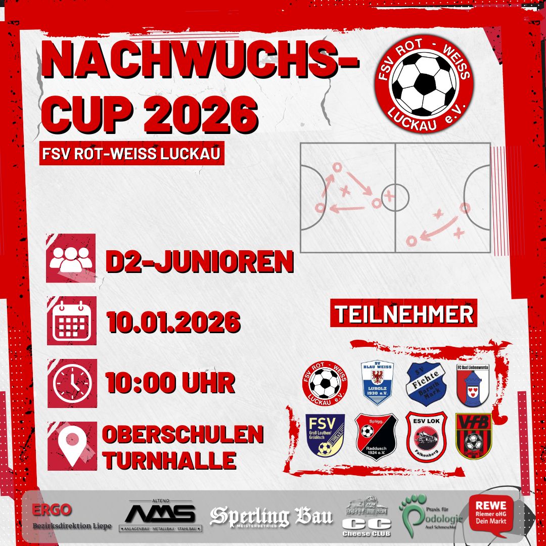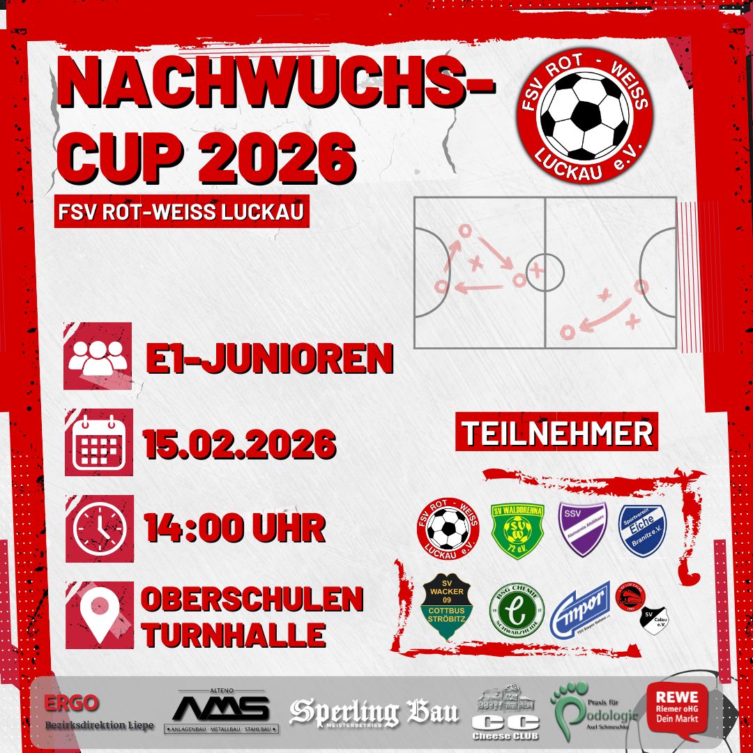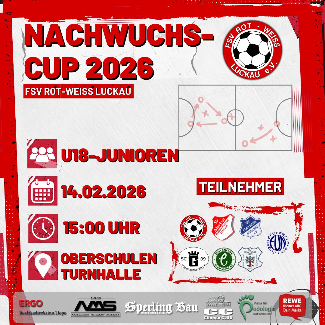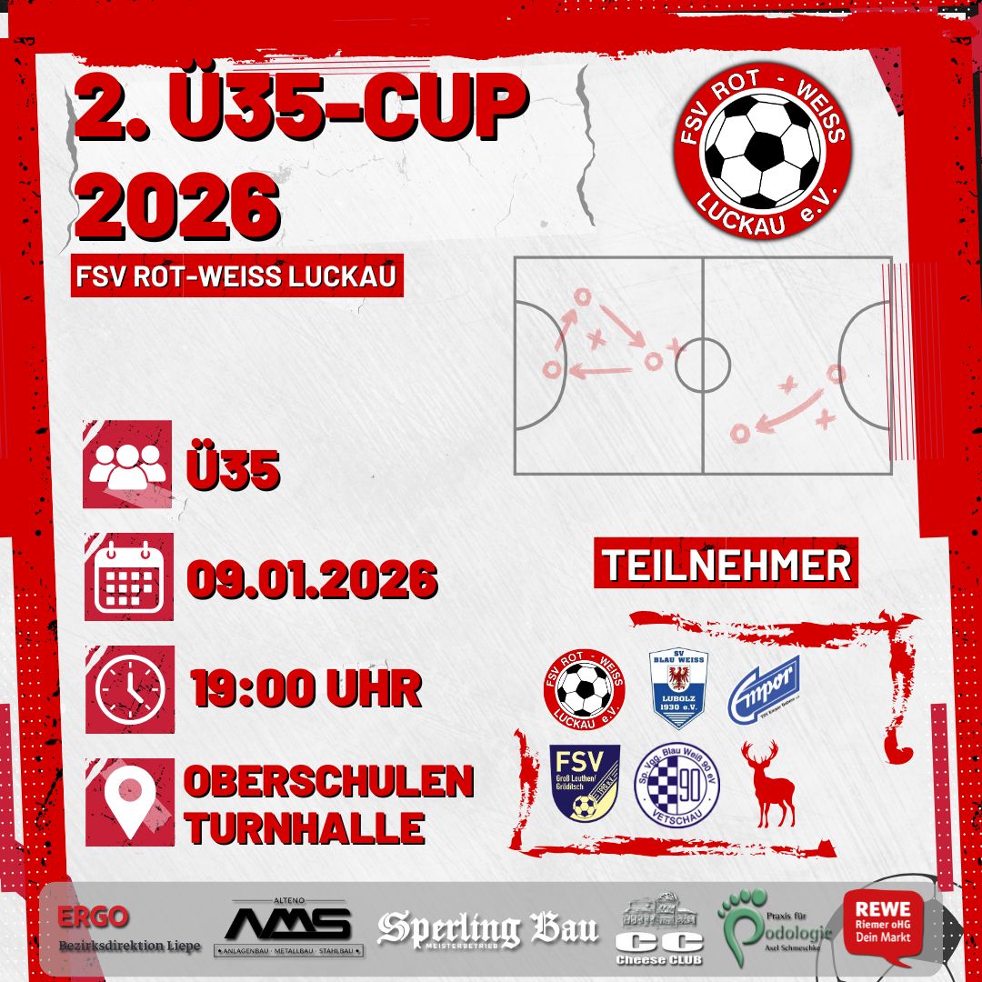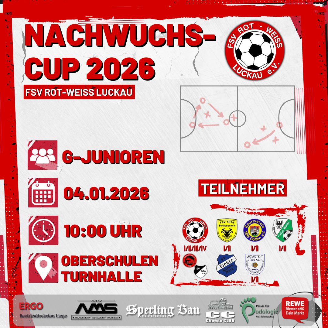 Eröffnen werden wir die Turnierreihe vom 03.-04.01.2026 mit den beiden Neujahrs-Cups der Herren, dem Turnier unser jüngsten Sportler und dem traditionsreichen vereinsinternen Turnier der Superlative! ⚽️