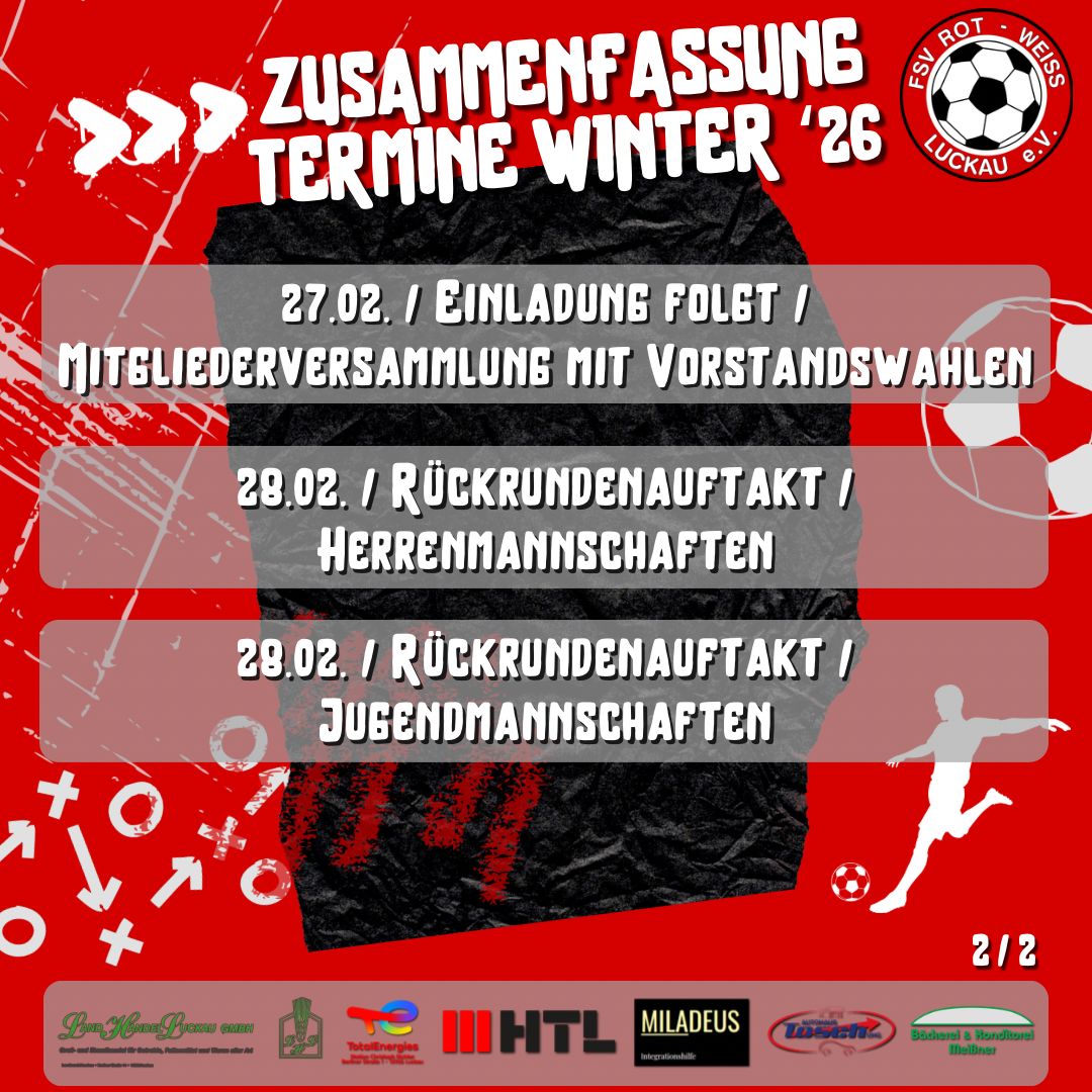PS: Terminkalender aufklappen.. am 27.02.2026 stellen wir die Weichen neu ein und wählen im Rahmen der ordentlichen Mitgliederversammlung einen neuen Vorstand! Und wenige Stunden später eröffnen unsere Herren- und Jugendmannschaften die Rückrunde.. es wird nicht langweilig! 🚀