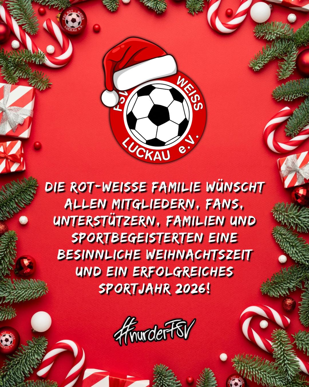 Die Rot-Weiße Familie wünscht euch eine besinnliche Weihnachtszeit, einen fröhlichen Rutsch ins neue Jahr und ein erfolgreiches Sportjahr 2026!