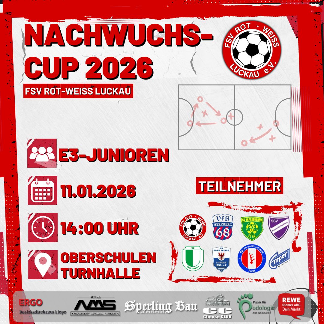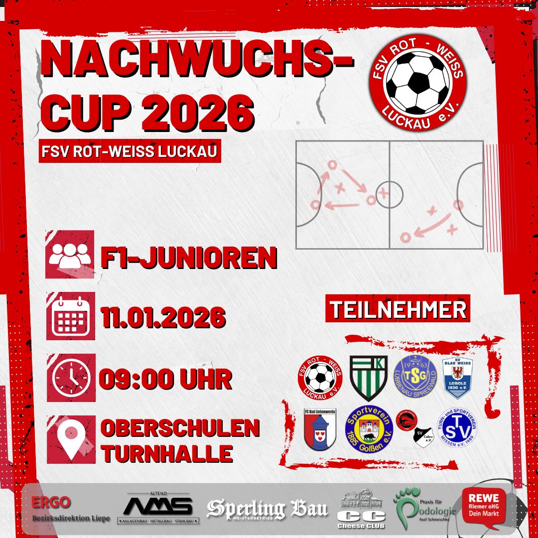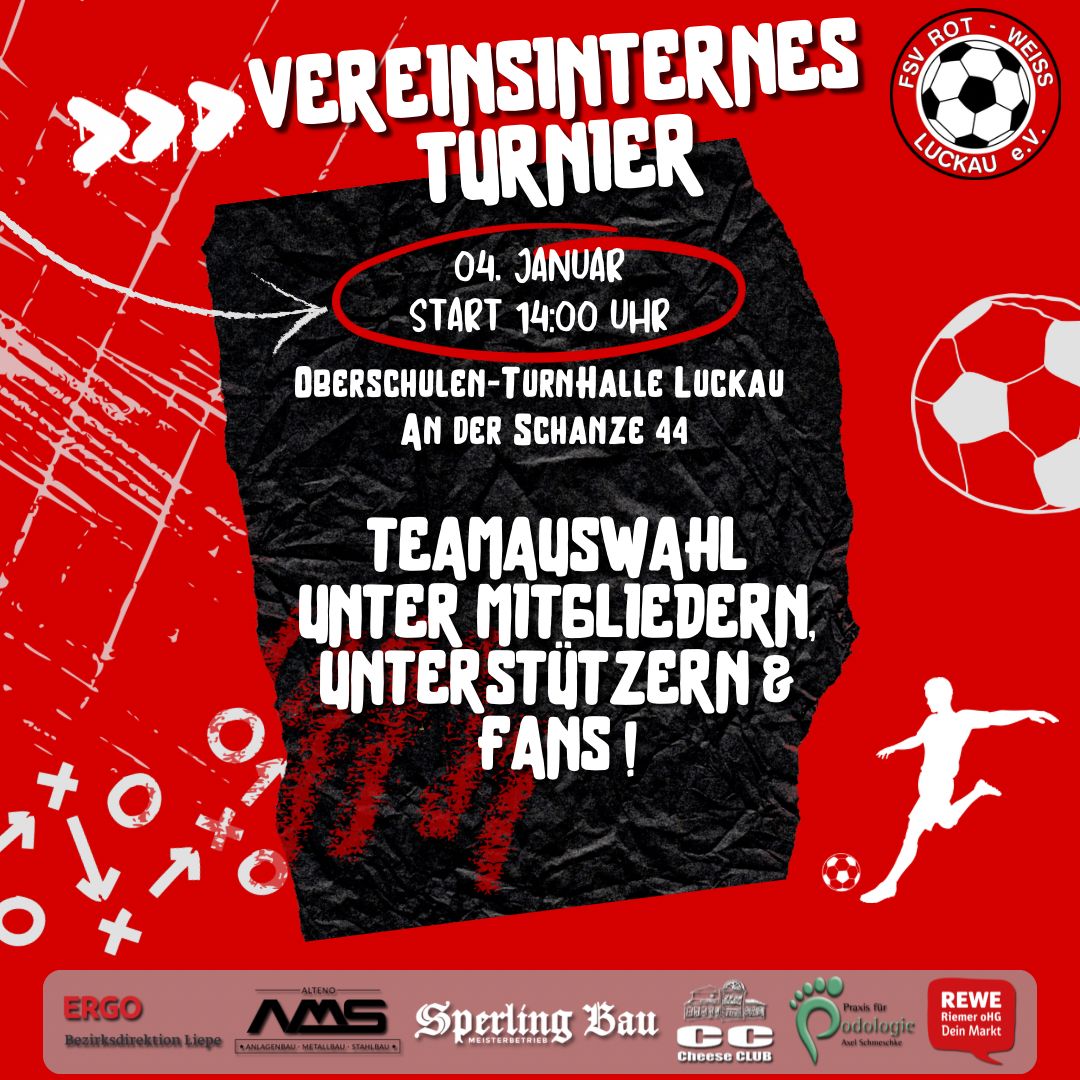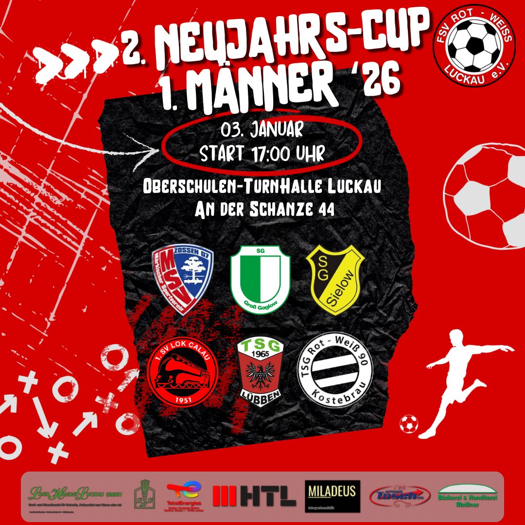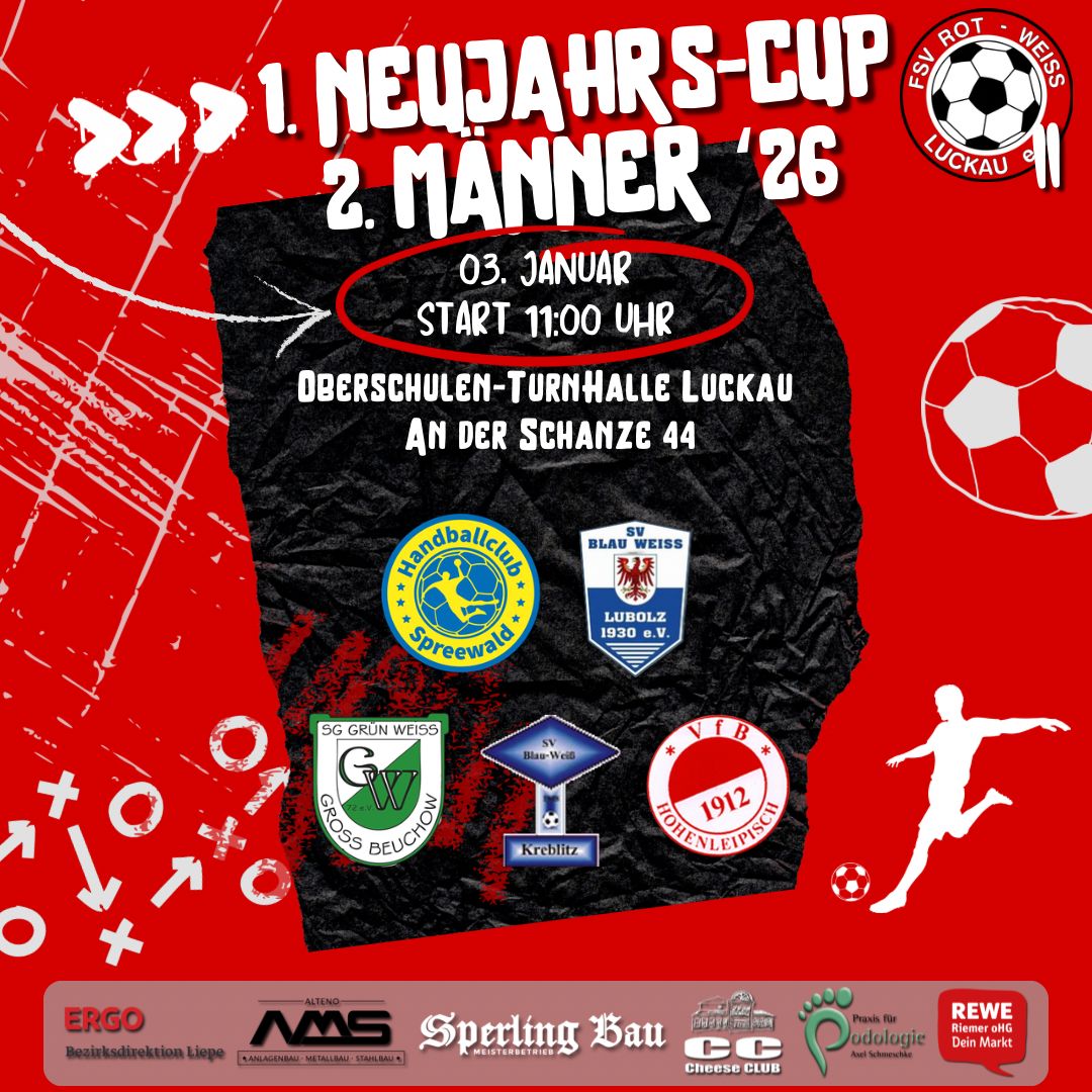 Eröffnen werden wir die Turnierreihe vom 03.-04.01.2026 mit den beiden Neujahrs-Cups der Herren, dem Turnier unser jüngsten Sportler und dem traditionsreichen vereinsinternen Turnier der Superlative! ⚽️
